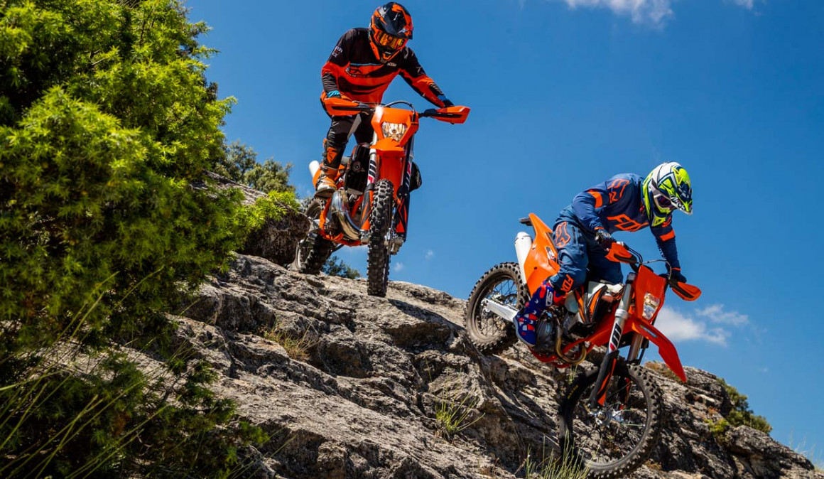 KTM ha renovada sus enduro (EXC) por completo con nuevos motores, una parte ciclo rediseñada para las suspensiones WP XPLOR, nueva caja de filtro de aire y nuevos sistemas de refrigeración y escape.